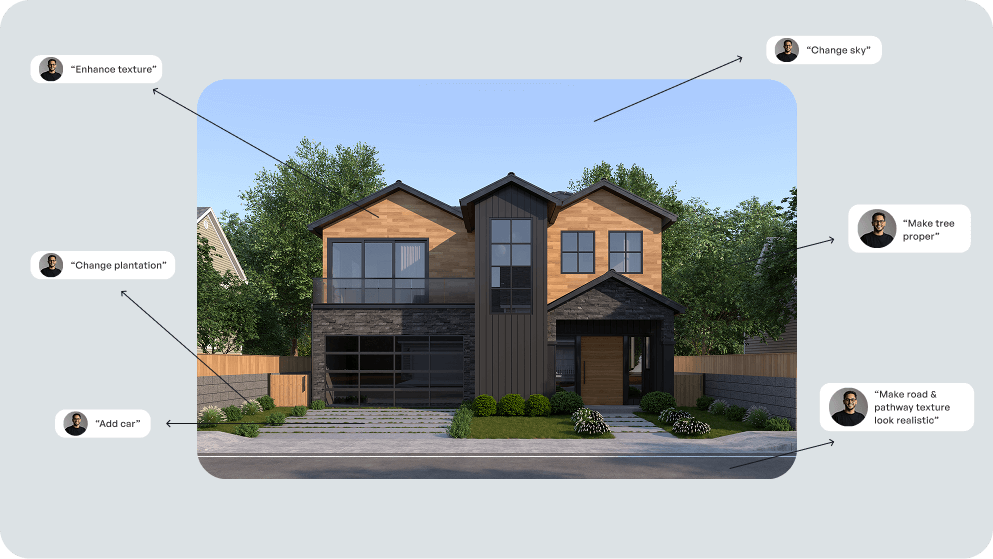 You share your comments — we adjust materials, colors, or landscaping details until the visuals align perfectly with your property.