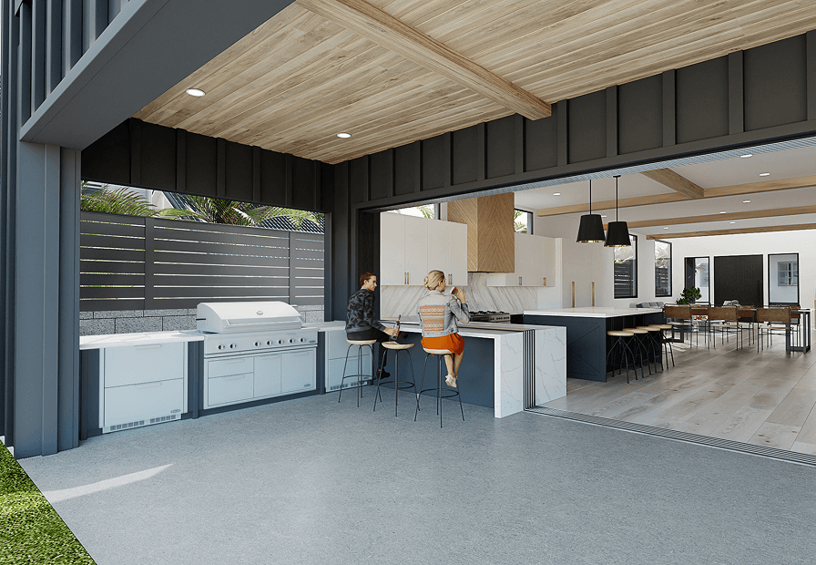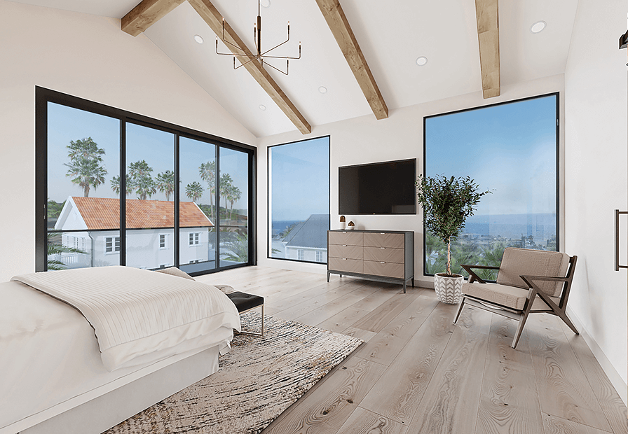 This newly constructed East Hermosa residence defines coastal-modern luxury with a 28-foot Fleetwood glass wall creating seamless indoor-outdoor living. It features a gourmet kitchen with a marble island, Wolf appliances, and outdoor grilling bar, all supported by high-end finishes and modern efficiency including solar power and an EV charger.