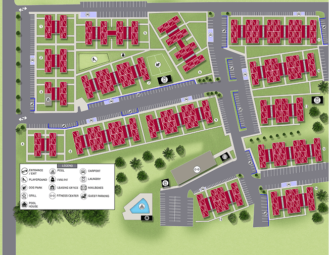 It visually represents your entire property layout — showing roads, amenities, unit clusters, and key landmarks to help clients understand the overall site plan instantly.